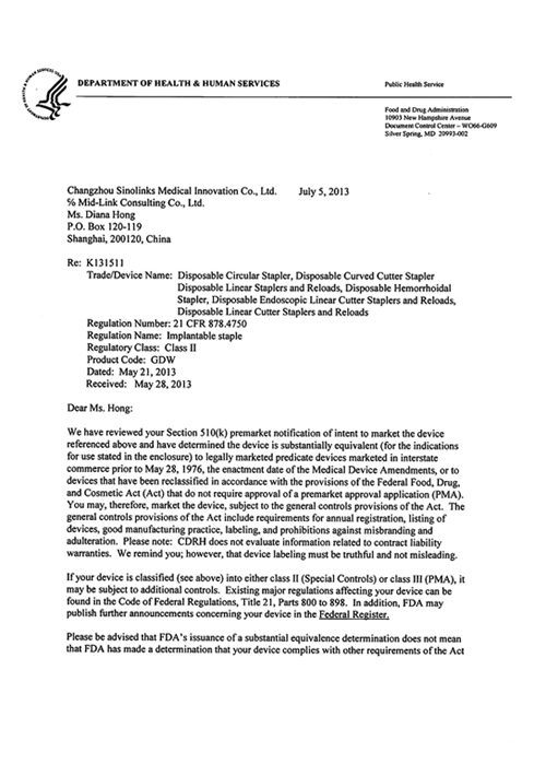 美国FDA(510k)证书